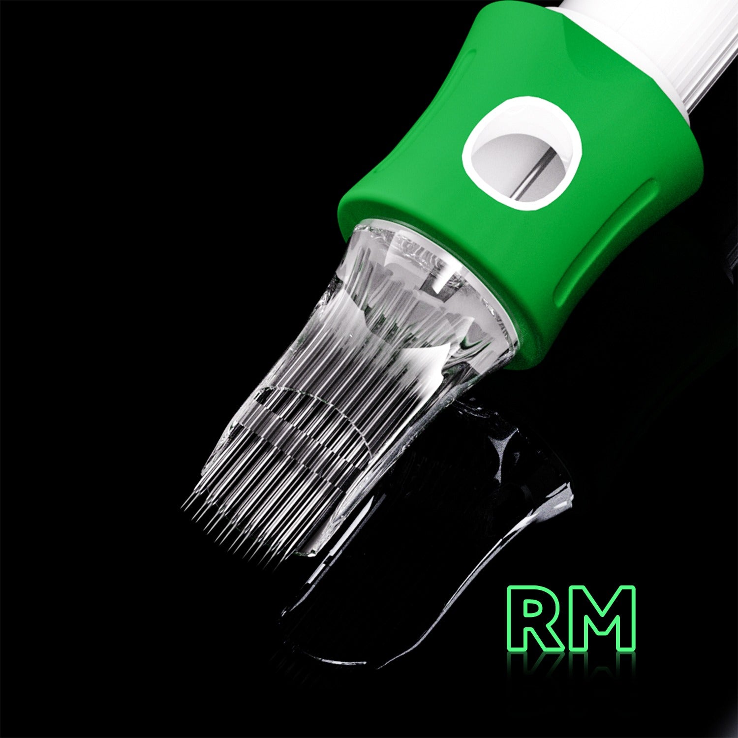 Agujas para tatuaje MO Generation 2 con funda de silicona: Un nuevo estilo de agujas para tatuaje en la industria. Todos los cartuchos se esterilizan con óxido de etileno antes de su venta y se envasan individualmente. Fabricadas con acero inoxidable quirúrgico de alta calidad y materiales de grado médico, la funda de silicona de colores se ajusta perfectamente a cada cartucho, reduciendo la fatiga de la mano y permitiendo al artista trabajar con precisión durante largas sesiones. Nuestras agujas son seguras y fáciles de usar.
