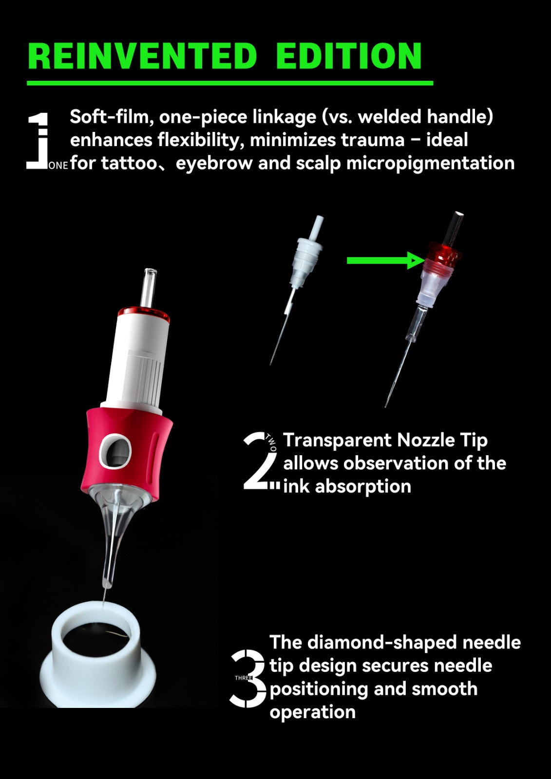 1. Sistema de cartuchos MO de segunda generación, sistema estable y aguja premium, diseñado para artistas profesionales. Cuidadosamente diseñado para una mayor comodidad al tatuar.