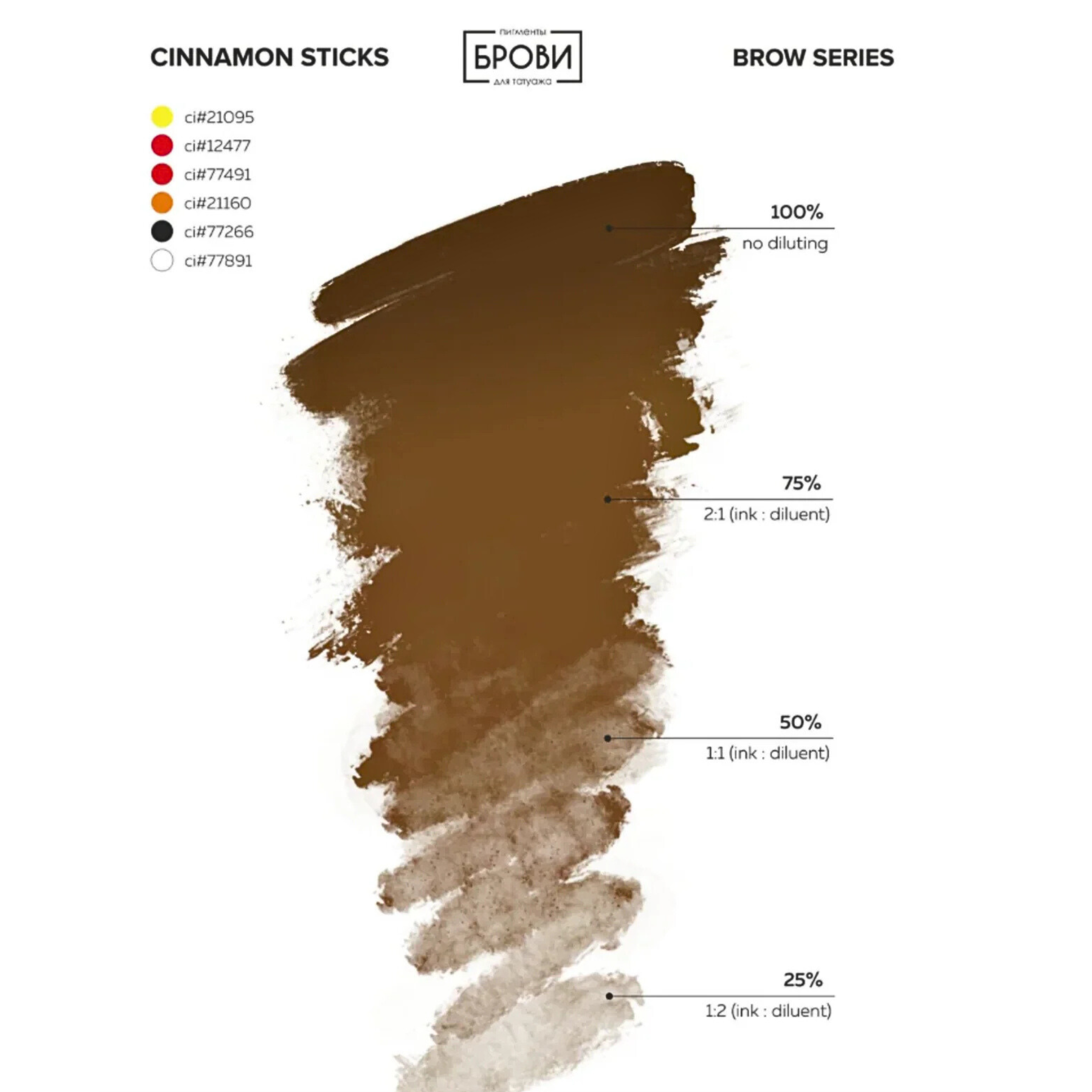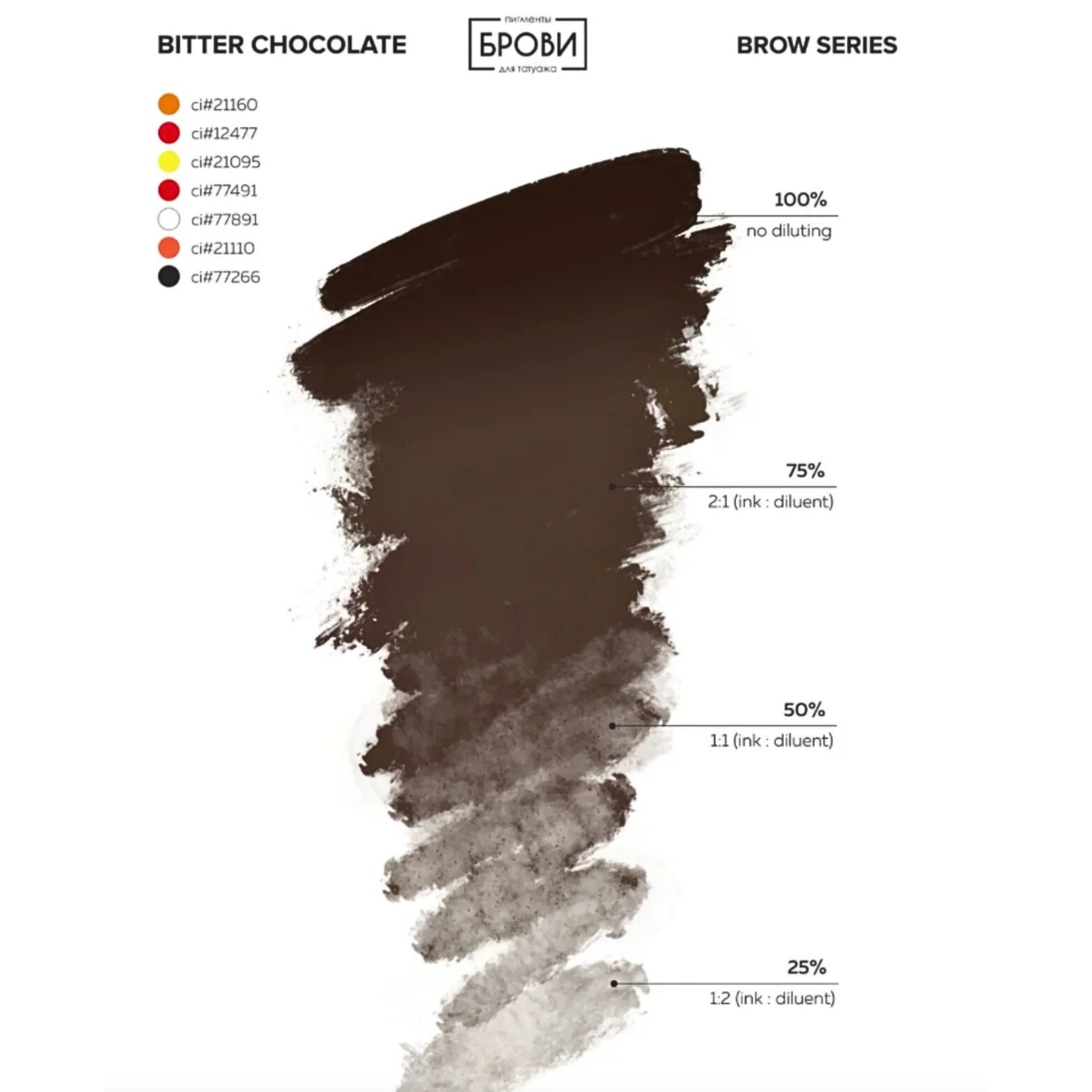 Pigmento marrón con base naranja cálida. Se utiliza como segundo color, más oscuro, para acentos al trabajar con fototipos Fitzpatrick I; o como primer color primario al trabajar con Fitzpatrick IV. Al usarlo como color principal, asegúrese de añadir corrector naranja o amarillo. Se recomienda su uso con diluyente.