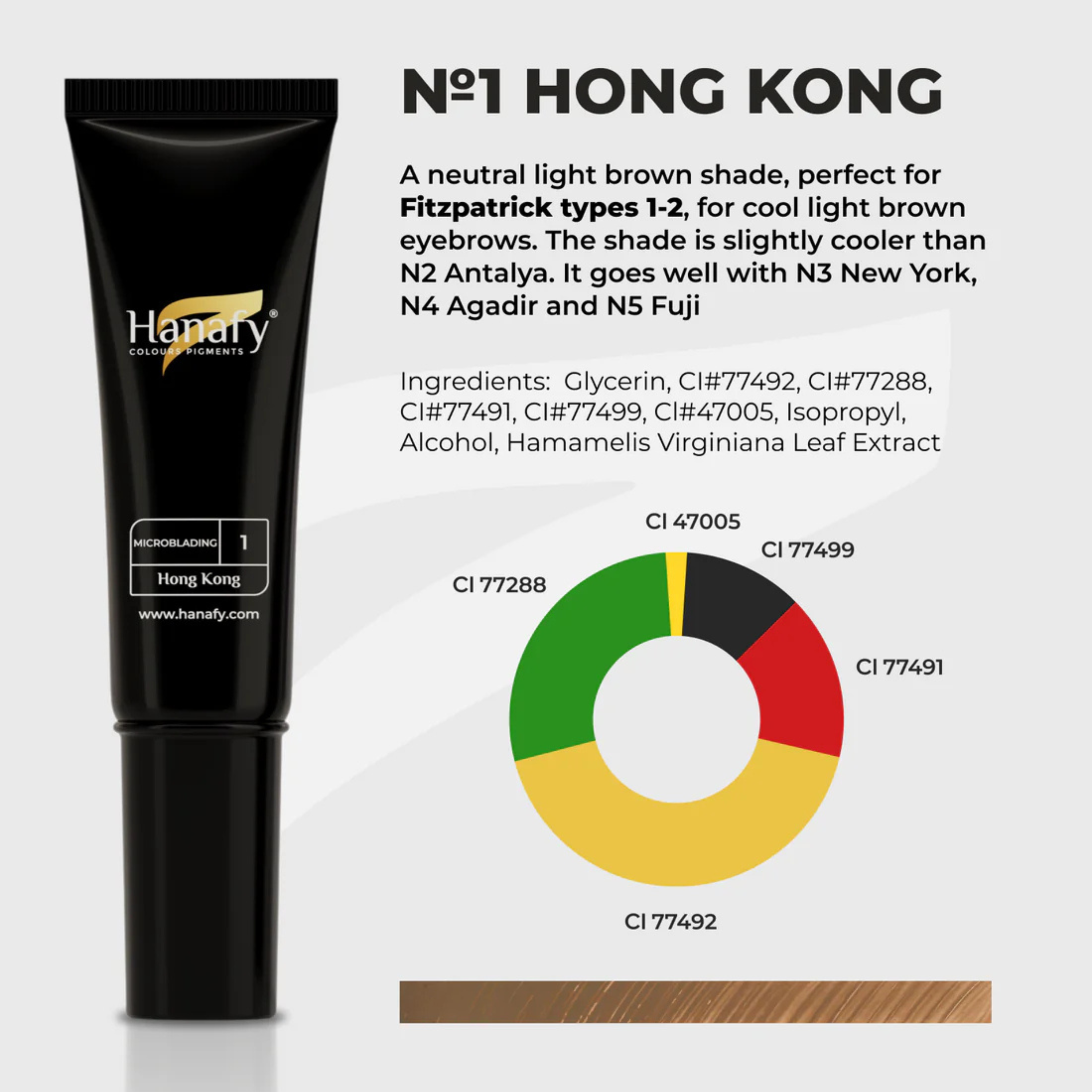 Nº1 «Hong Kong» – Marrón claro neutro, ideal para Fitzpatrick 1-2, cejas claras frías