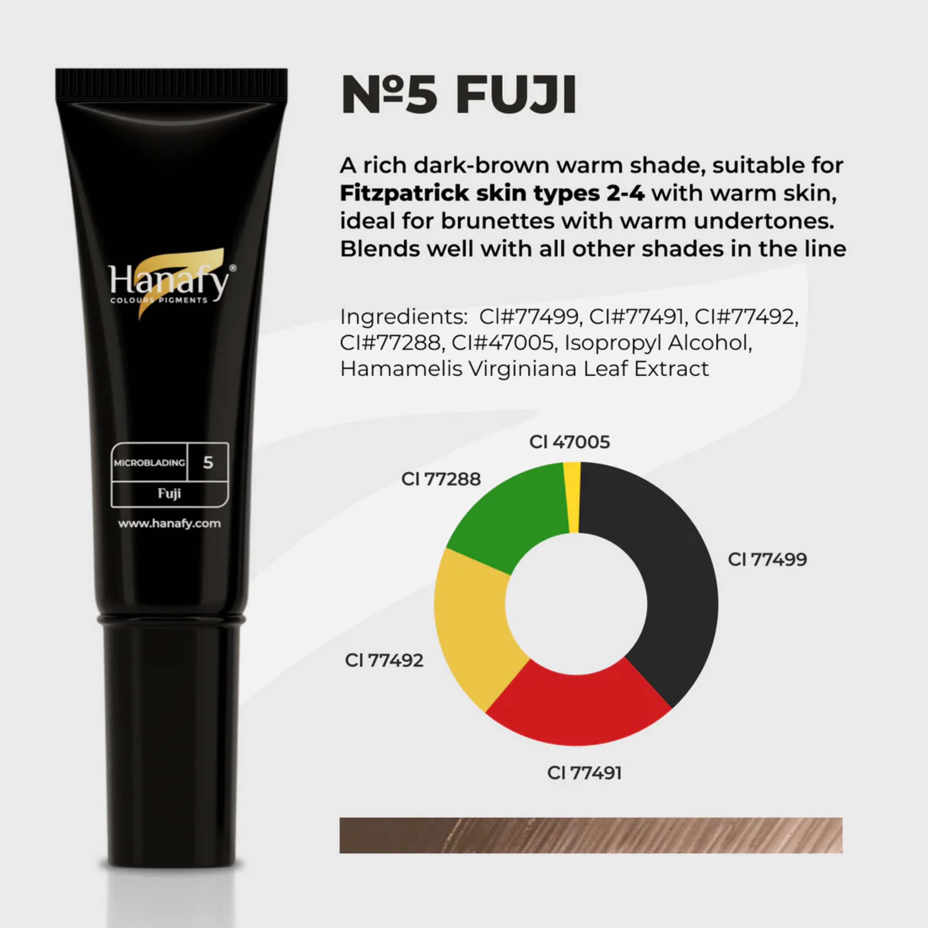 Nº5 «Fuji» – Marrón oscuro cálido e intenso para Fitzpatrick 2-4. Perfecto para morenas de tipo cálido