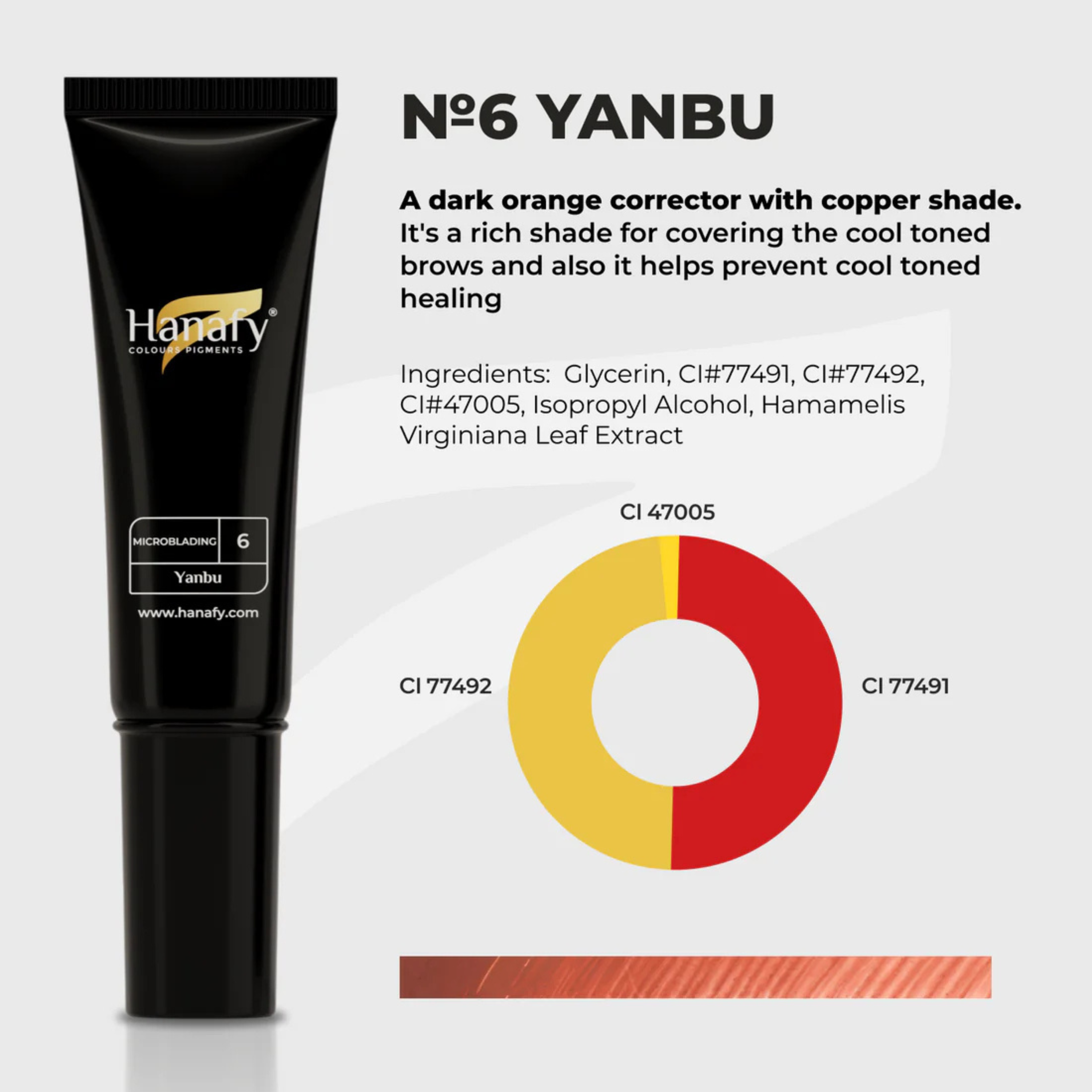 Nº6 «Yanbu» (Corrector) – Tono cobre-naranja intenso para neutralizar cejas frías y prevenir una cicatrización fría