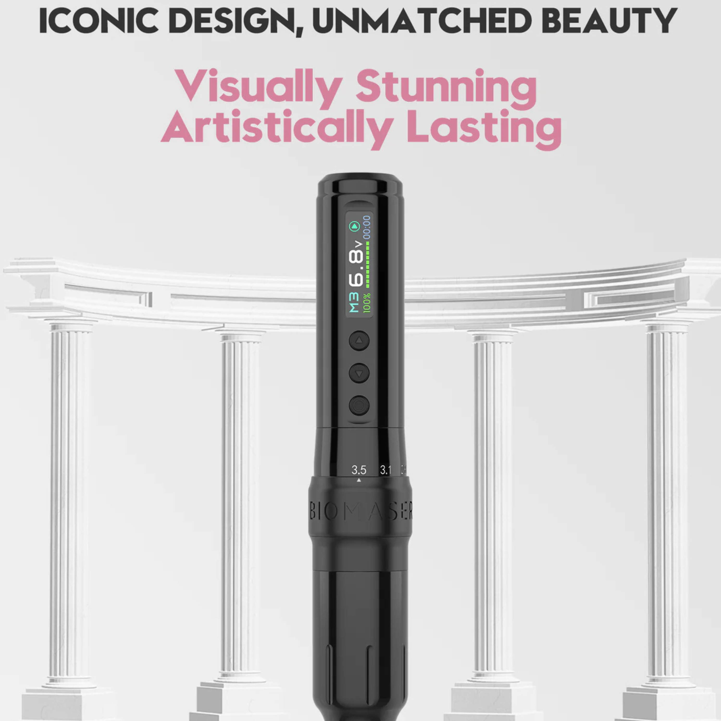 Presentamos el Biomaser Plenilune U1 Pro , nuestro nuevo dispositivo insignia de micropigmentación compacto, donde un diseño icónico se une a un rendimiento sin precedentes. Inspirado en la elegancia atemporal de las columnas dóricas griegas, está meticulosamente diseñado para redefinir la precisión, la comodidad y la libertad creativa.