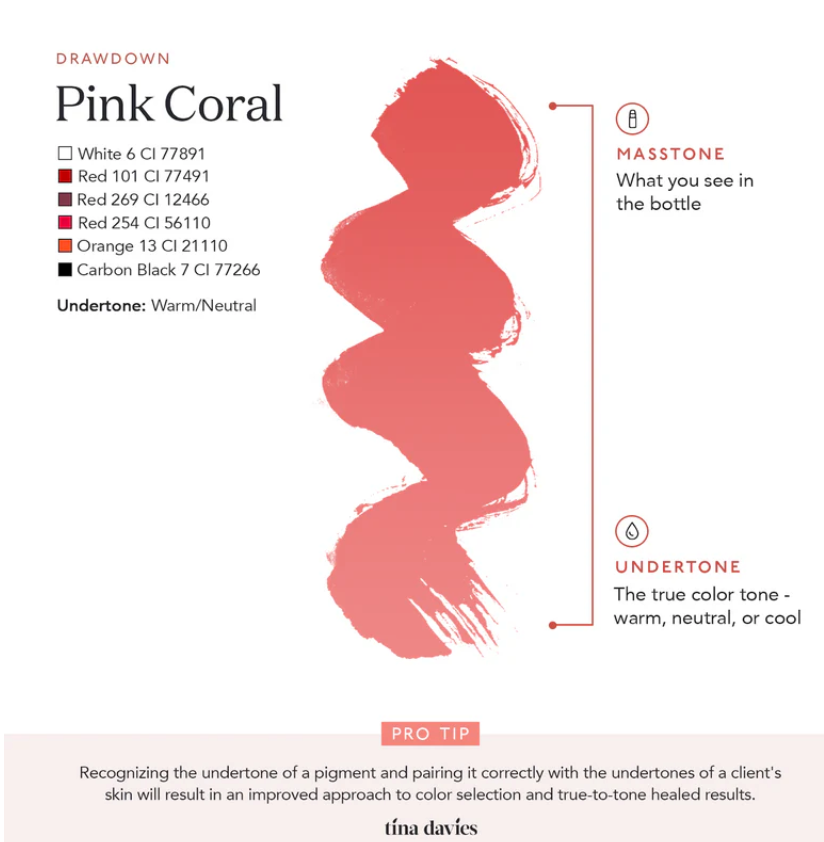 Pink Coral es el pigmento PMU de color rosa anaranjado perfecto para clientes que buscan un efecto natural con un toque de coral para darle vitalidad.