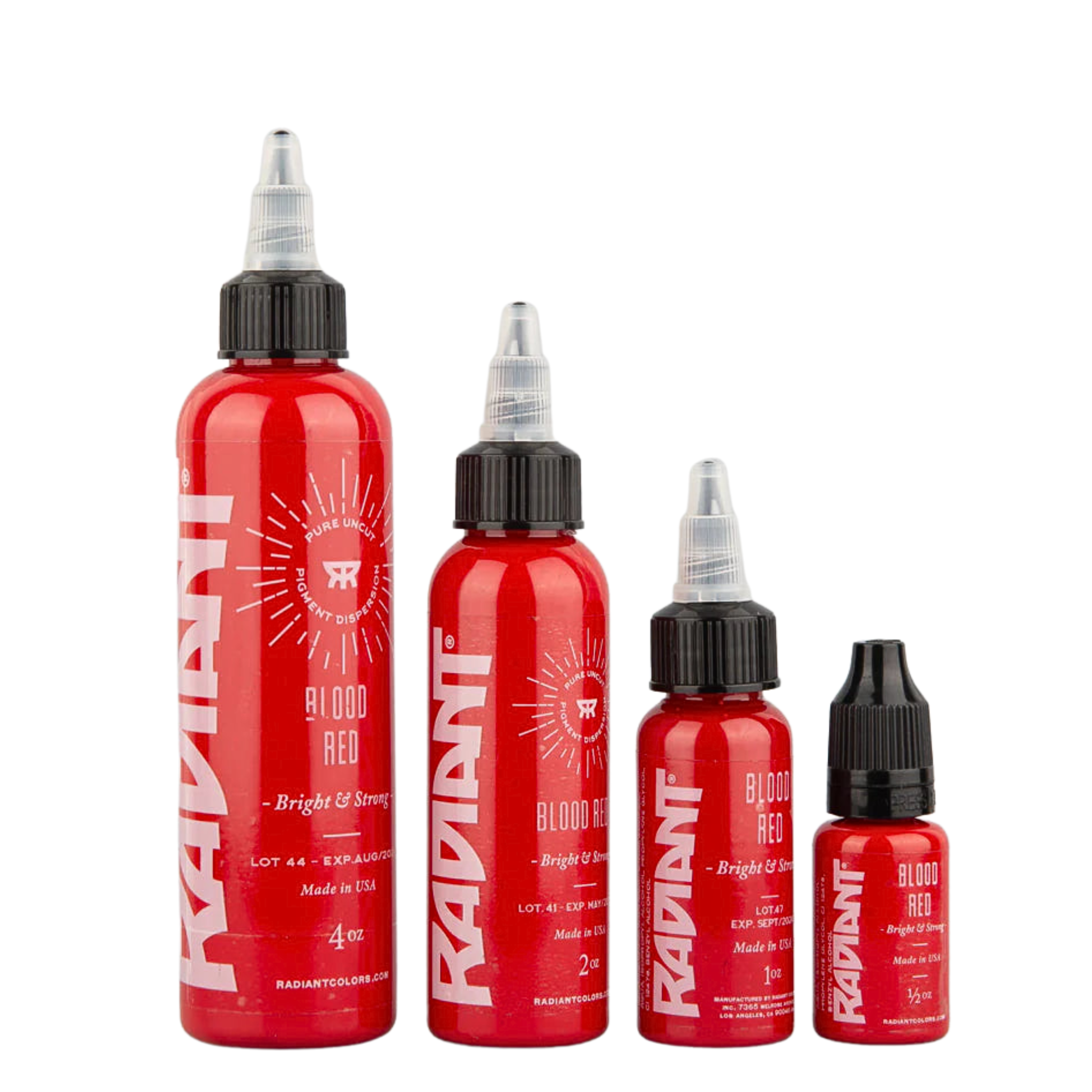 La tinta de tatuaje Radiant Ink color rojo sangre está diseñada para ofrecer pigmentos de alta pureza, con una fórmula vegana y libre de crueldad animal. Su tono rojo intenso y brillante se mantiene estable con el paso del tiempo, garantizando resultados consistentes tanto en trazos como en rellenos.