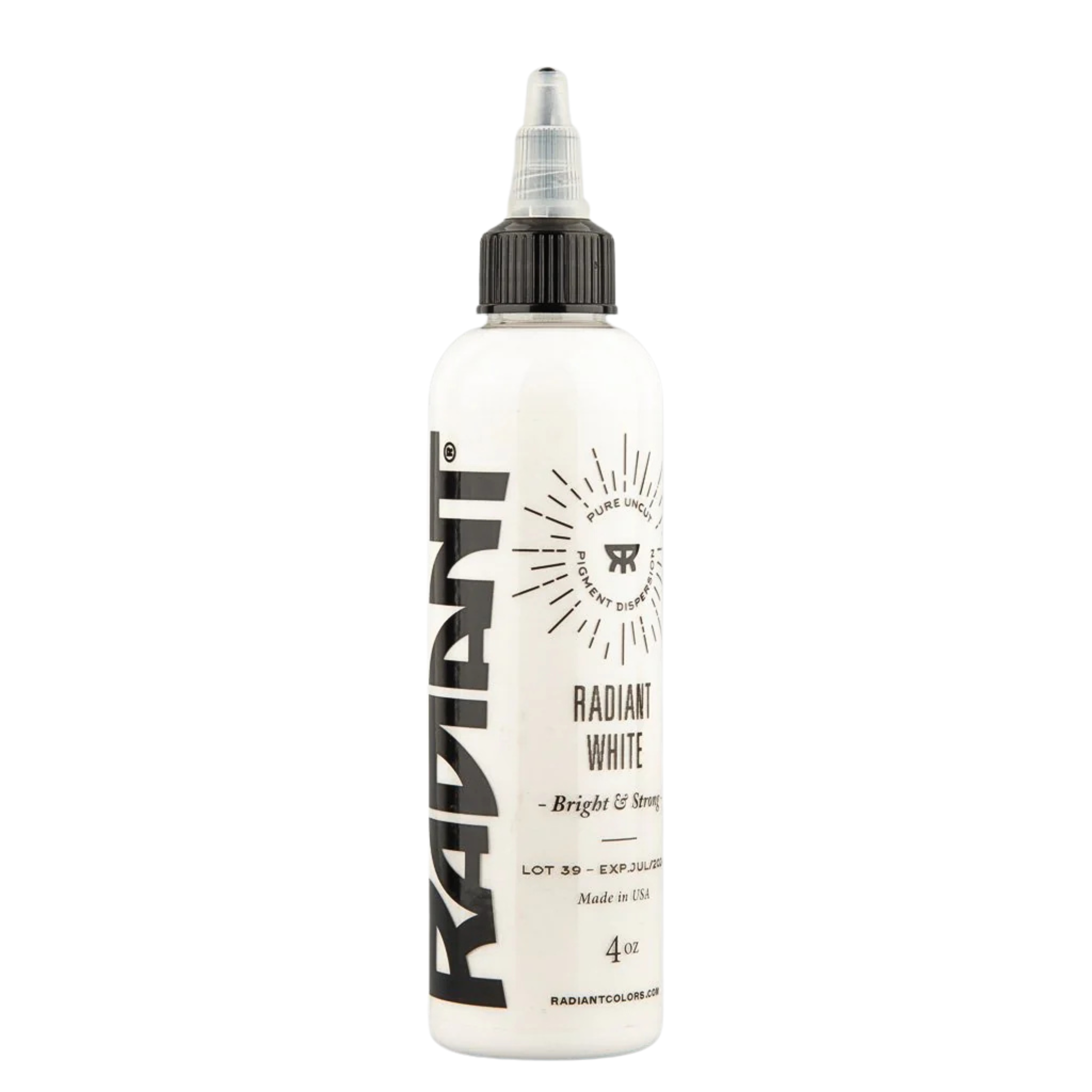 La tinta Radiant White de Radiant Ink destaca por su consistencia, facilidad de aplicación y durabilidad del color, convirtiéndose en la elección predilecta de artistas que buscan acabados nítidos y vibrantes.